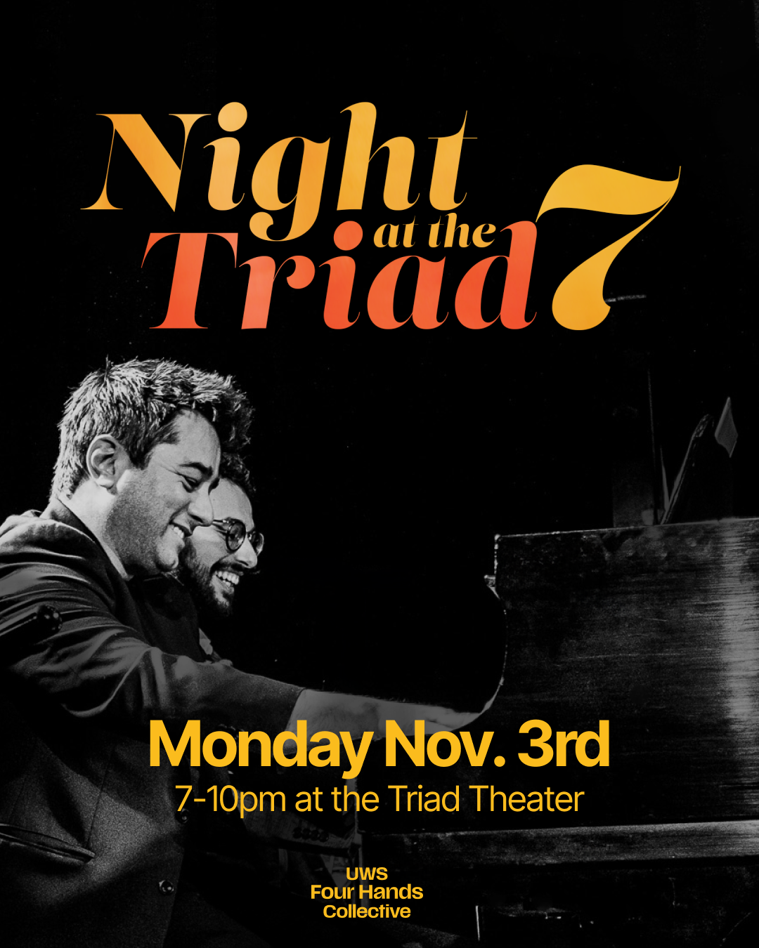 Night at the Triad is our UWS showcase event featuring performers from the local community and beyond. Directed by maestros Antongiulio Foti and Matt Baker, these nights are filled with stunning performances, many surprises and community connection.